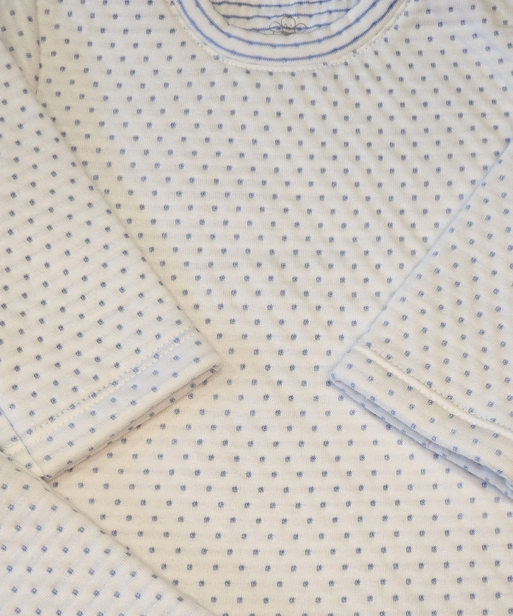 O tecido jacquard de Pima Peruano é ideal para manter as crianças aquecidas com muito conforto. Seu tecido acolchoado, 100% Algodão Pima, deixa a pele respirar dando maior conforto durante o sono.