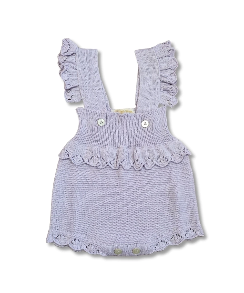 Encante-se com o Romper Bebê Tricot - Babado Escalope Lavanda, uma peça charmosa e versátil para o enxoval do seu bebê. Confeccionado em tricot antialérgico, este romper oferece conforto e segurança para a pele delicada do seu pequeno.