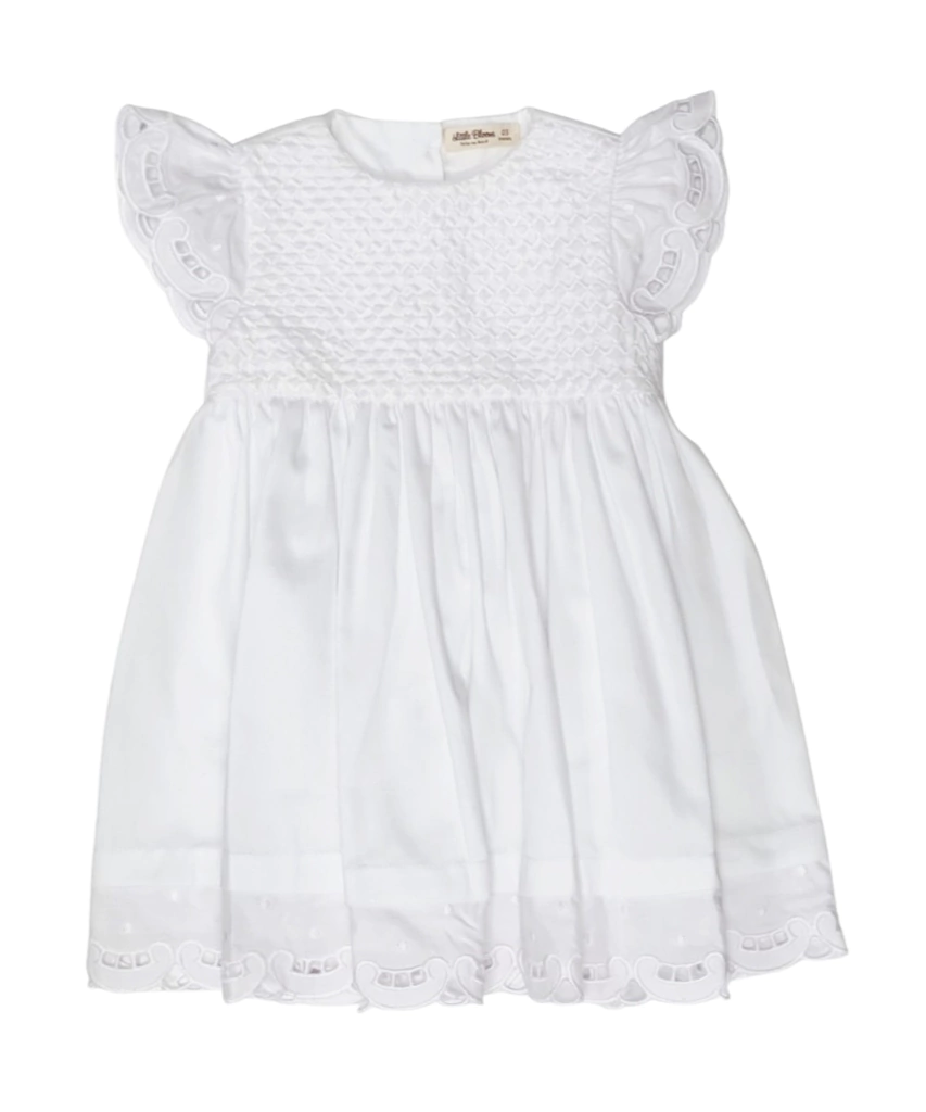 Vestido, maravilhoso, um verdadeiro clássico, com detalhe estilo casinha de abelha no peito, mangas e barra com rico bordado em rechilieu.